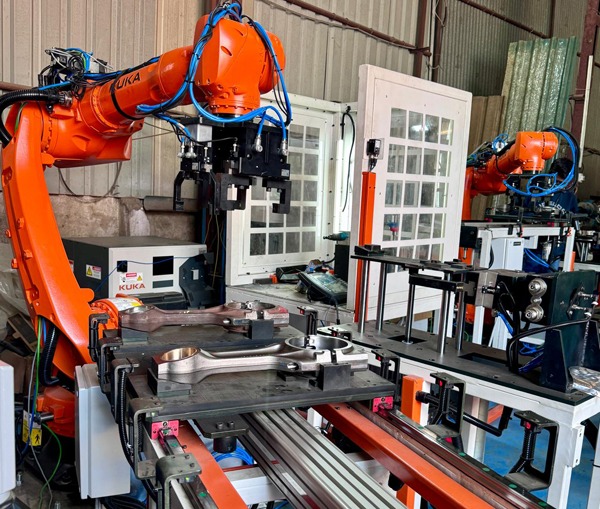 A robotic deburring cell is an automated system designed to remove burrs, sharp edges, or excess material from parts after machining process like milling, turning or casting Industrial robot arm equipped with specialized tools like abrasive brusher, grinding wheels, or polishing tools. Robotic systems can offer high precision, ensuring that burrs are consistently removed, and the part's dimensional tolerances are maintained.